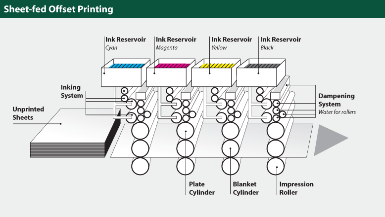 – where the material is supplied as individual sheets of a specific format. Most printing houses in Poland use sheet-fed machines. The sheets are printed with high-viscosity offset inks, which are fixed through absorption and polymerization. After the ink is applied to the sheets, they are transferred to a so-called delivery unit, which stacks the sheets. Even with IR drying or powdering, the stack needs time to allow the ink to properly set on the paper. In web (roll) printing, this process does not occur, which makes production significantly faster.